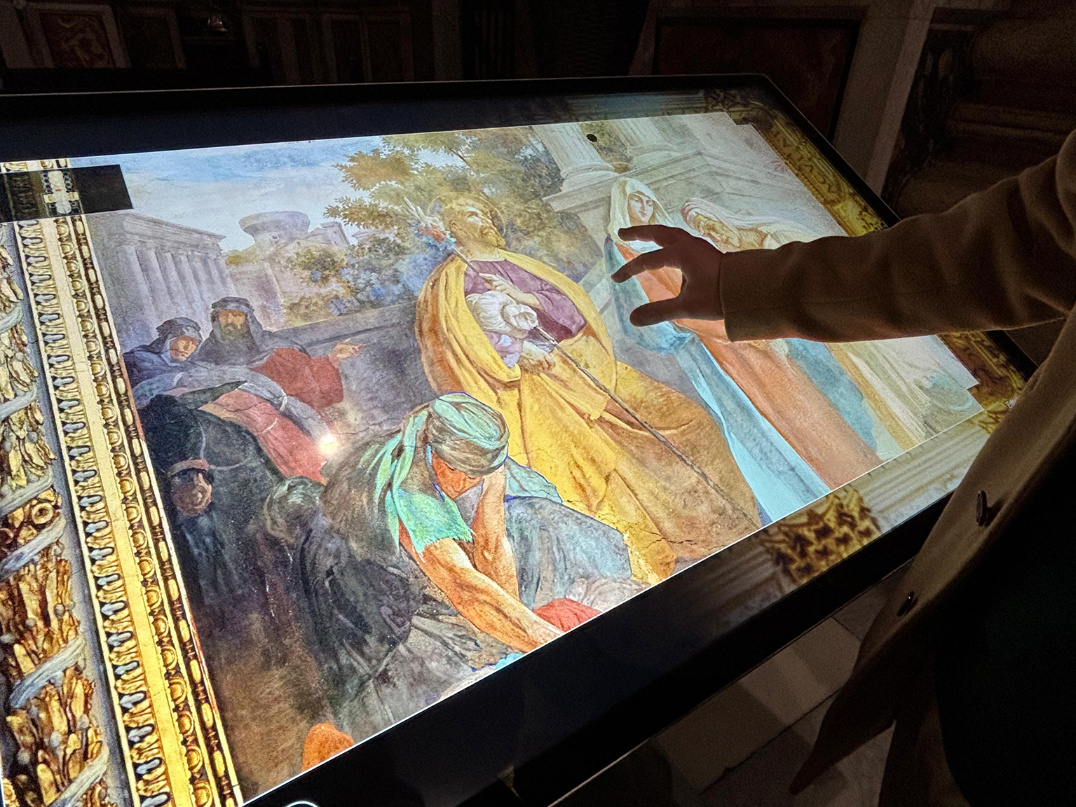 Janus ha realizzato un tavolo multimediale interattivo che offre un’esperienza immersiva attraverso la tecnologia Gigapixel, consentendo di esplorare in altissima definizione le decorazioni dei soffitti e di coglierne dettagli invisibili a occhio nudo.